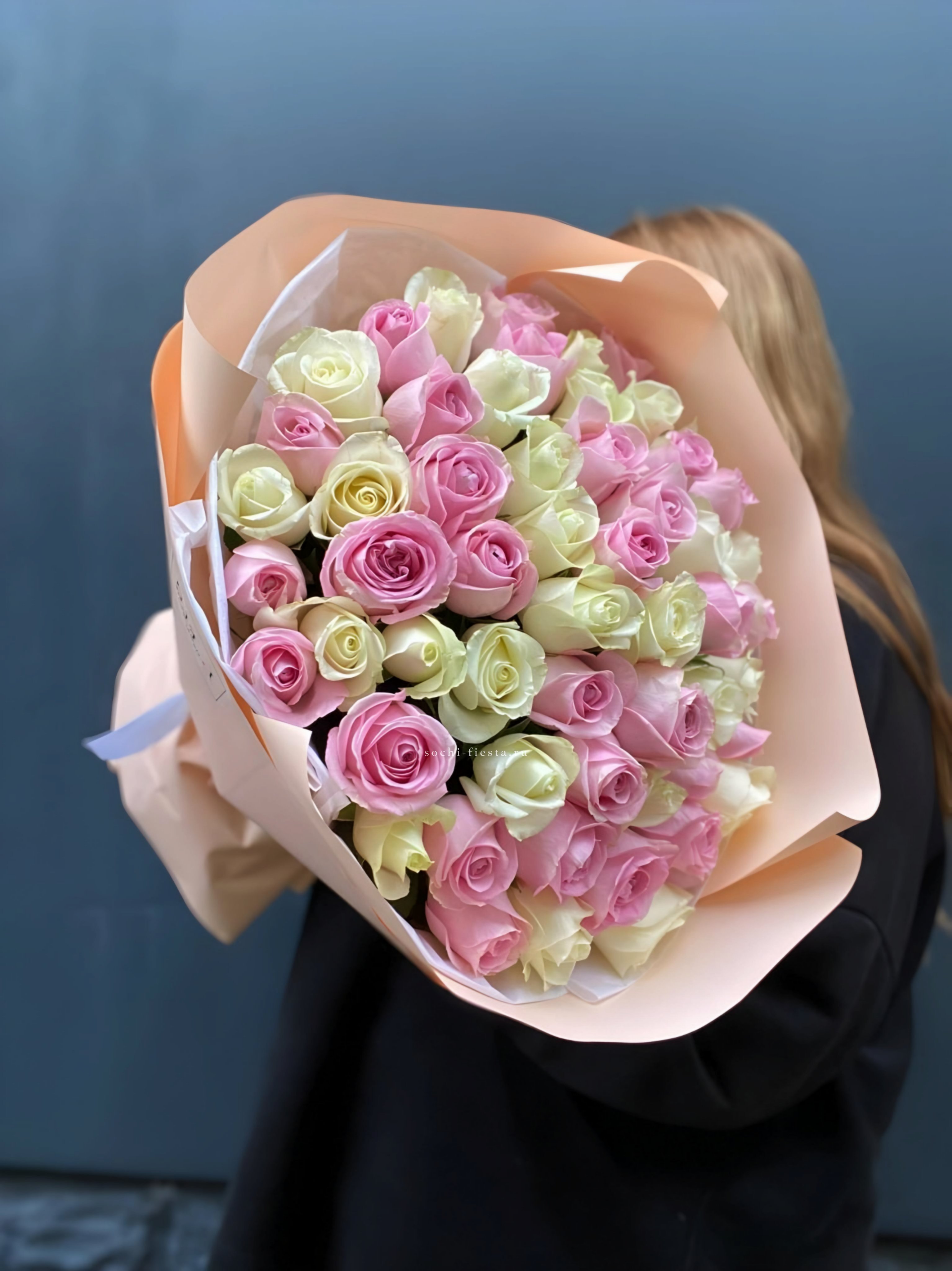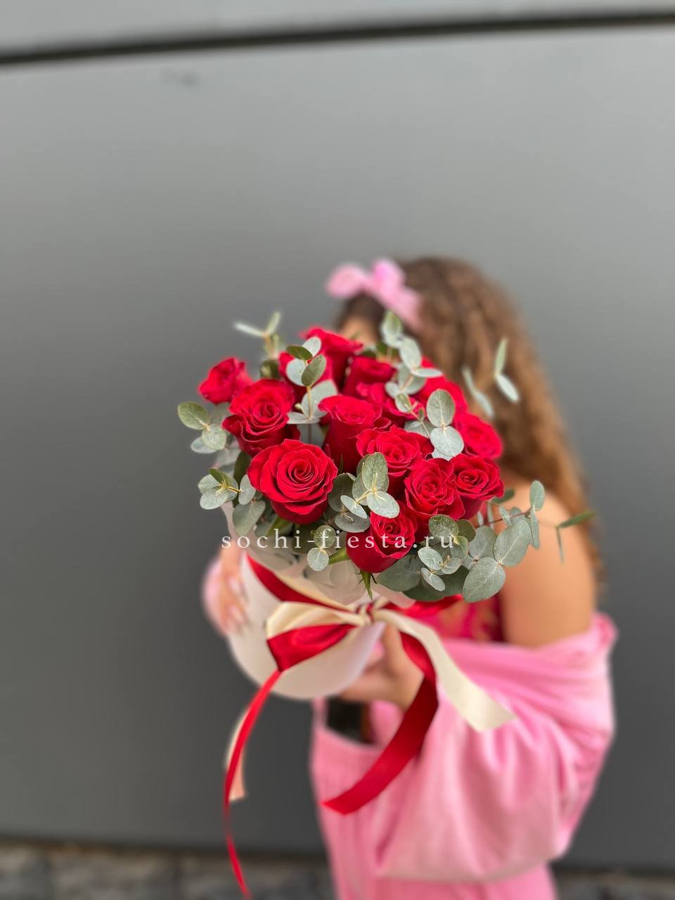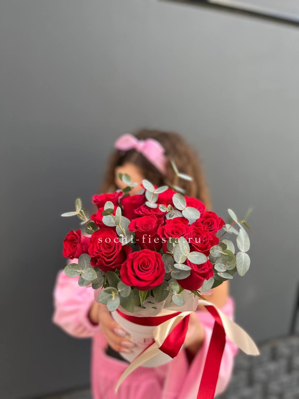 Сто одна кенийская роза в едином цилиндре — это впечатляющий масштаб и безупречная симметрия. Плотный силуэт и насыщенный цвет создают мощное визуальное присутствие. Композиция звучит сама за себя.