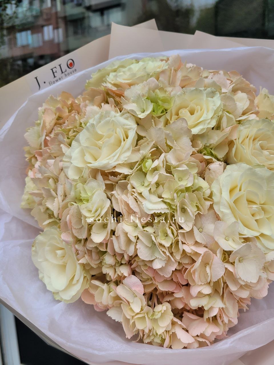 Букет гортензии и роз