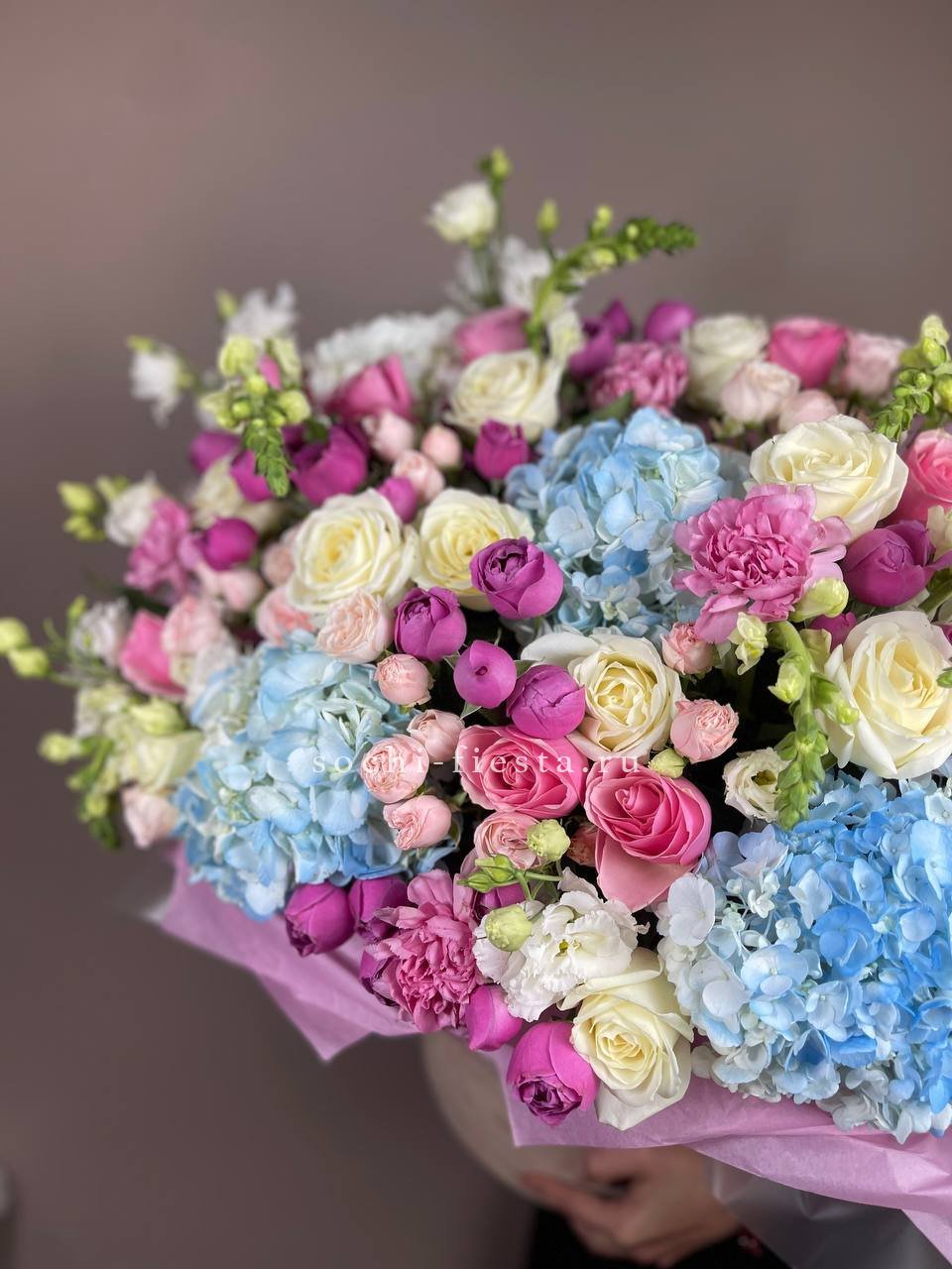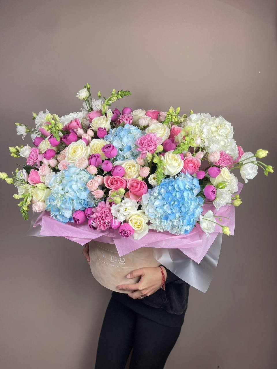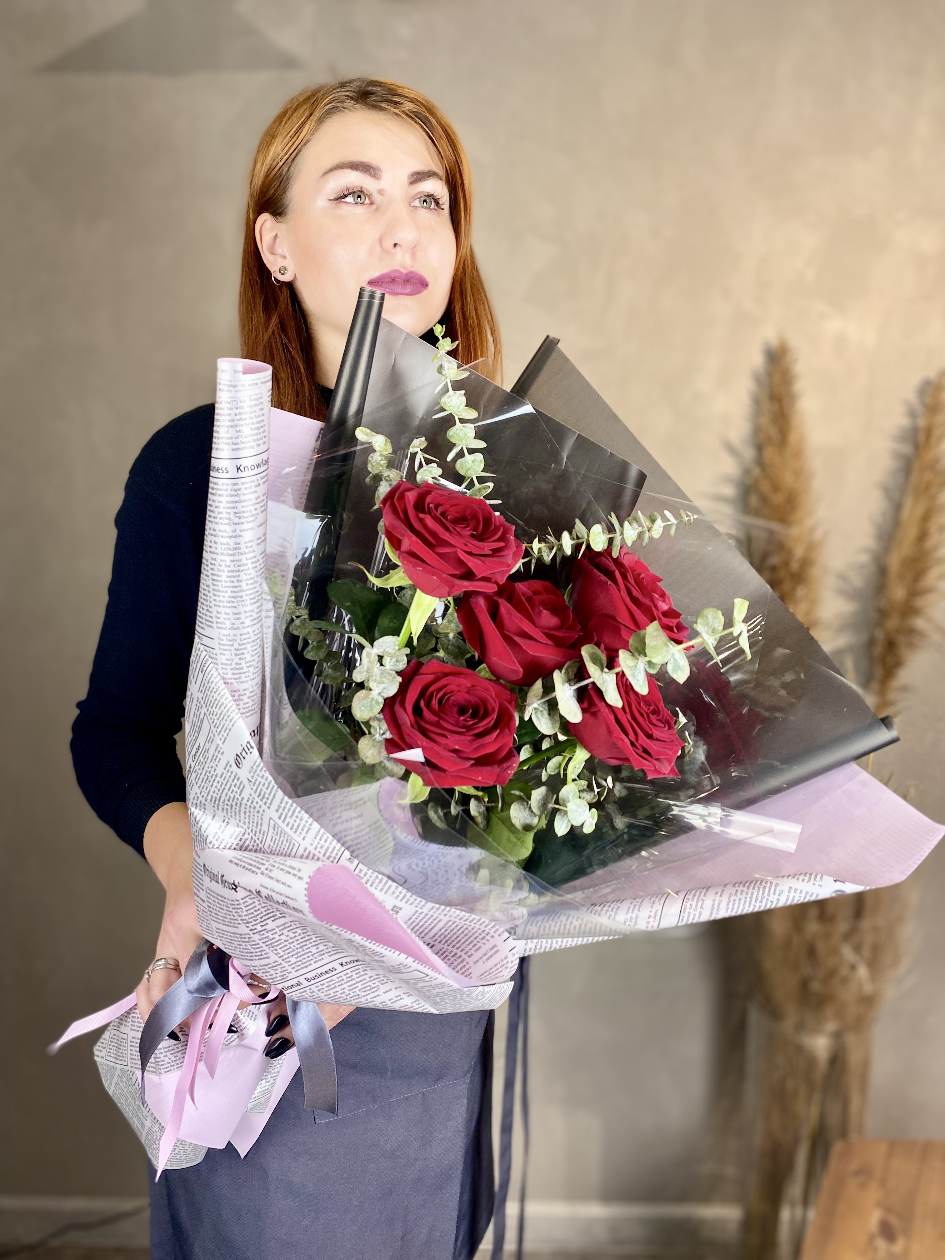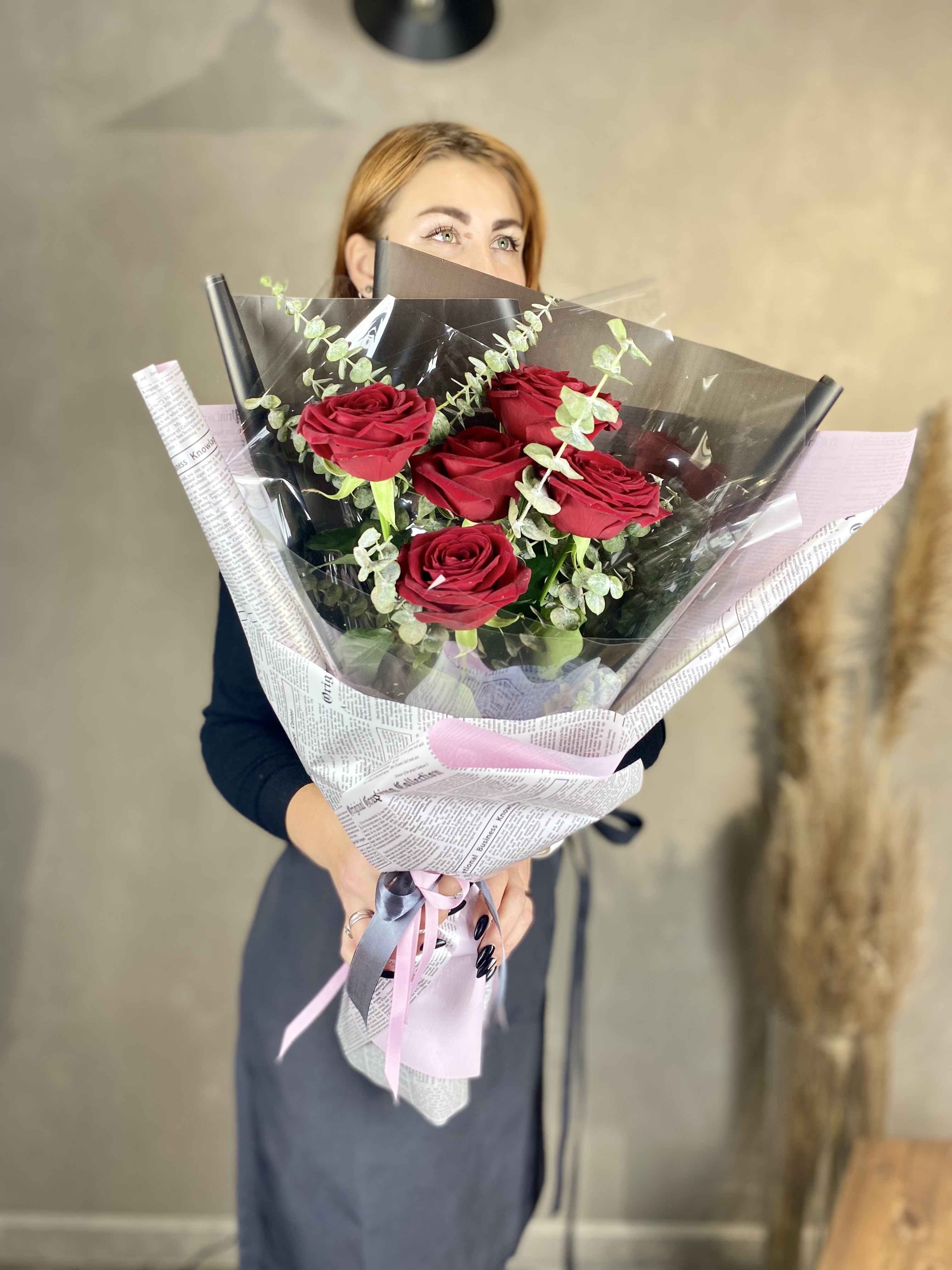 Французские розы глубокого красного оттенка образуют плотное цветочное полотно в корзине. Пятьсот один бутон создает монументальную композицию, где каждый цветок усиливает общее впечатление.