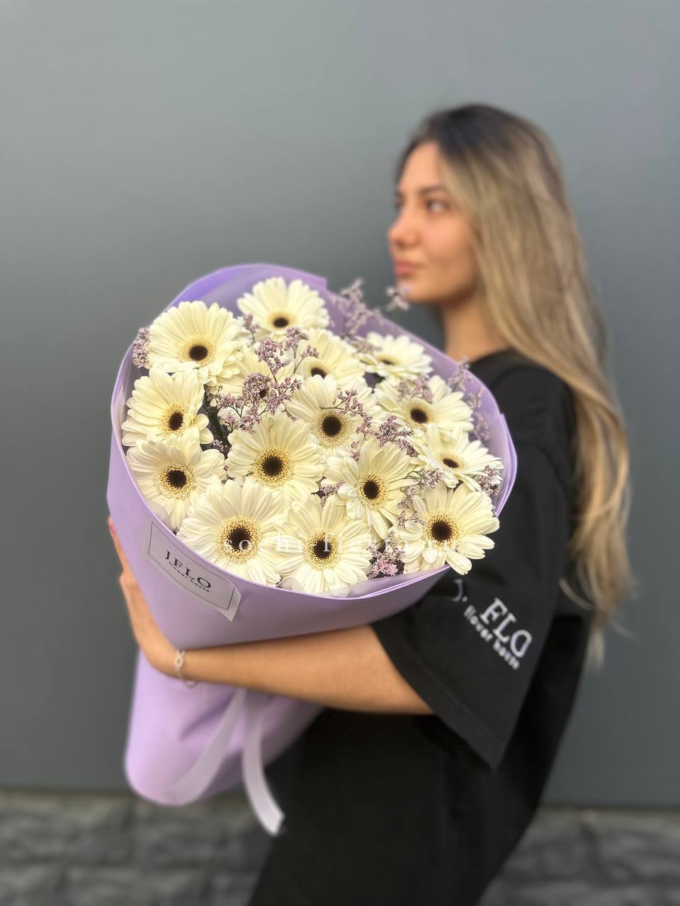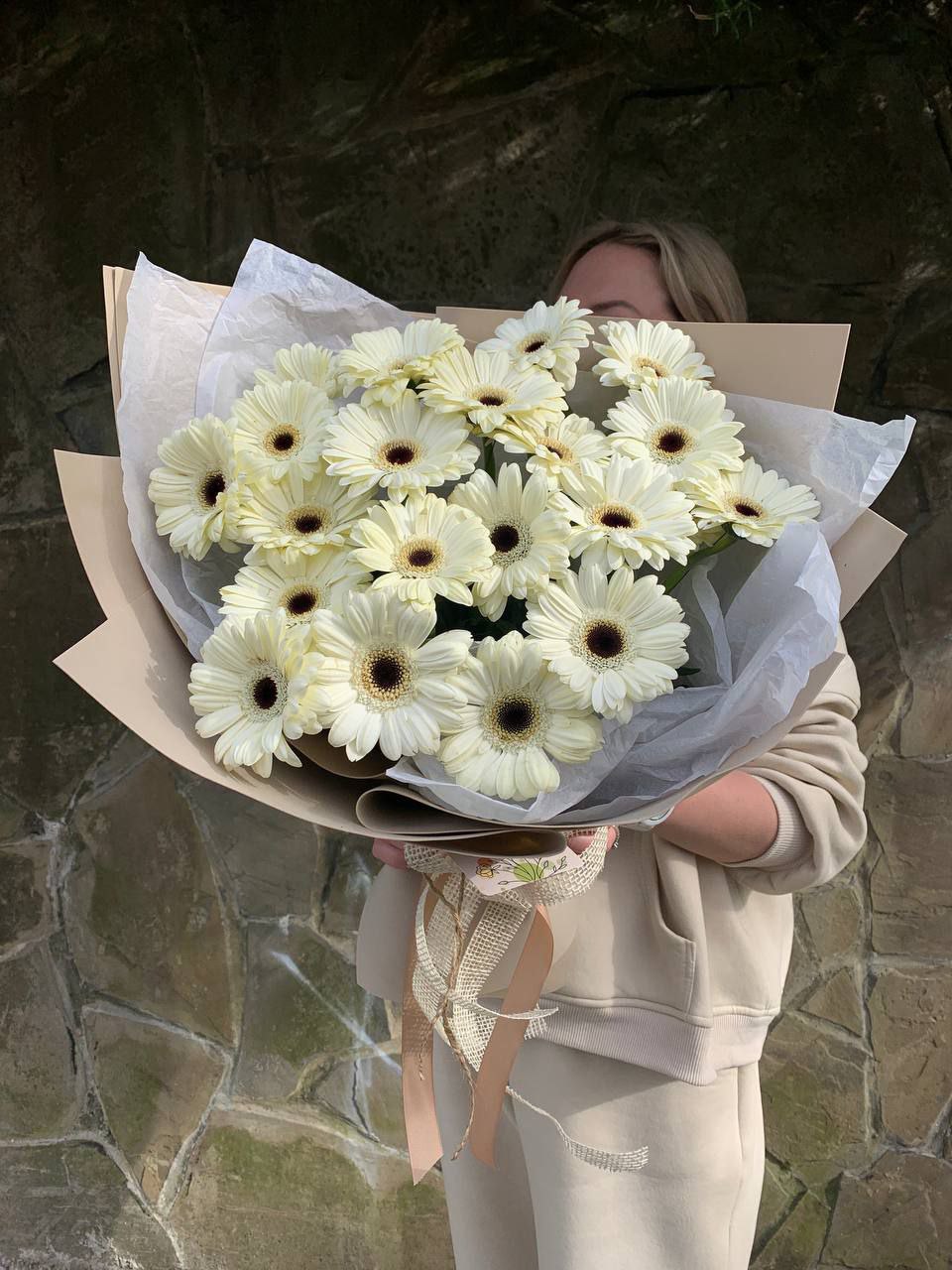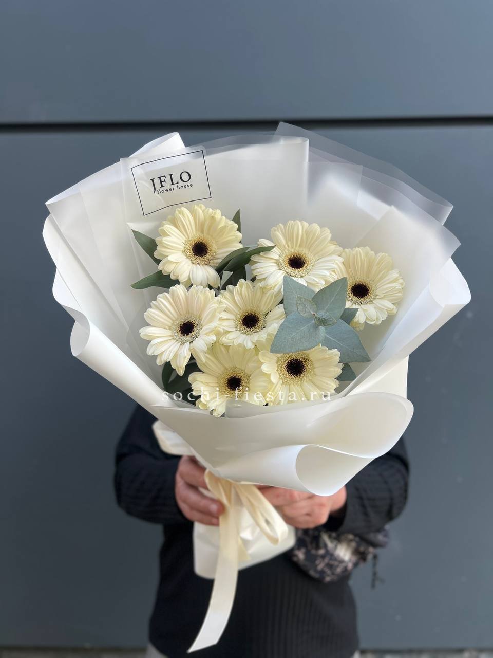 голландская гербера 7 шт., лента, дизайнерская упаковка