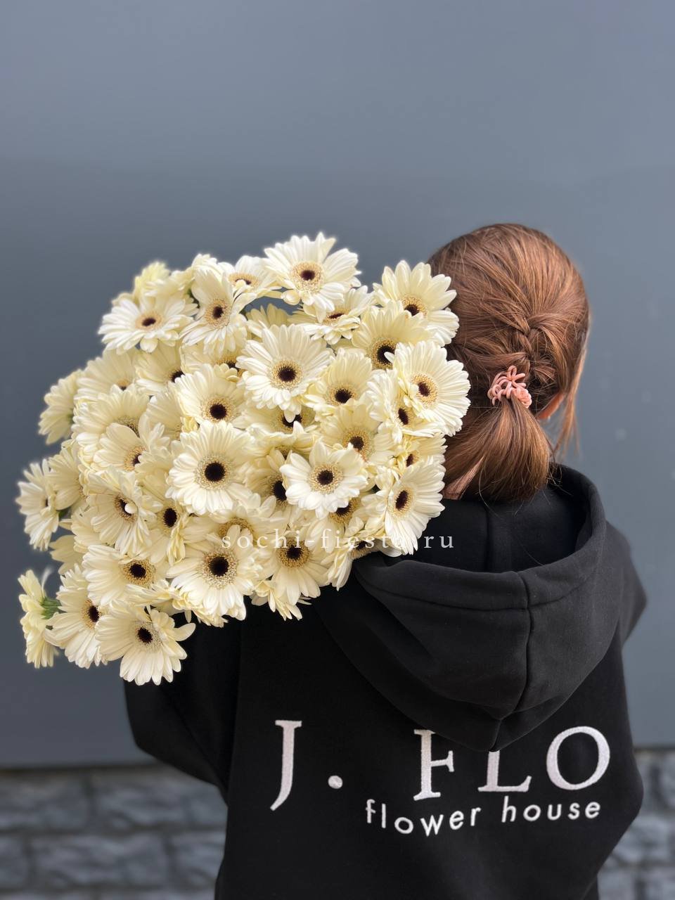 Семь крупных бутонов с открытой сердцевиной и упругими лепестками. Герберы из Голландии держат форму и радуют свежестью. Оттенок согласуется с вами перед сборкой.