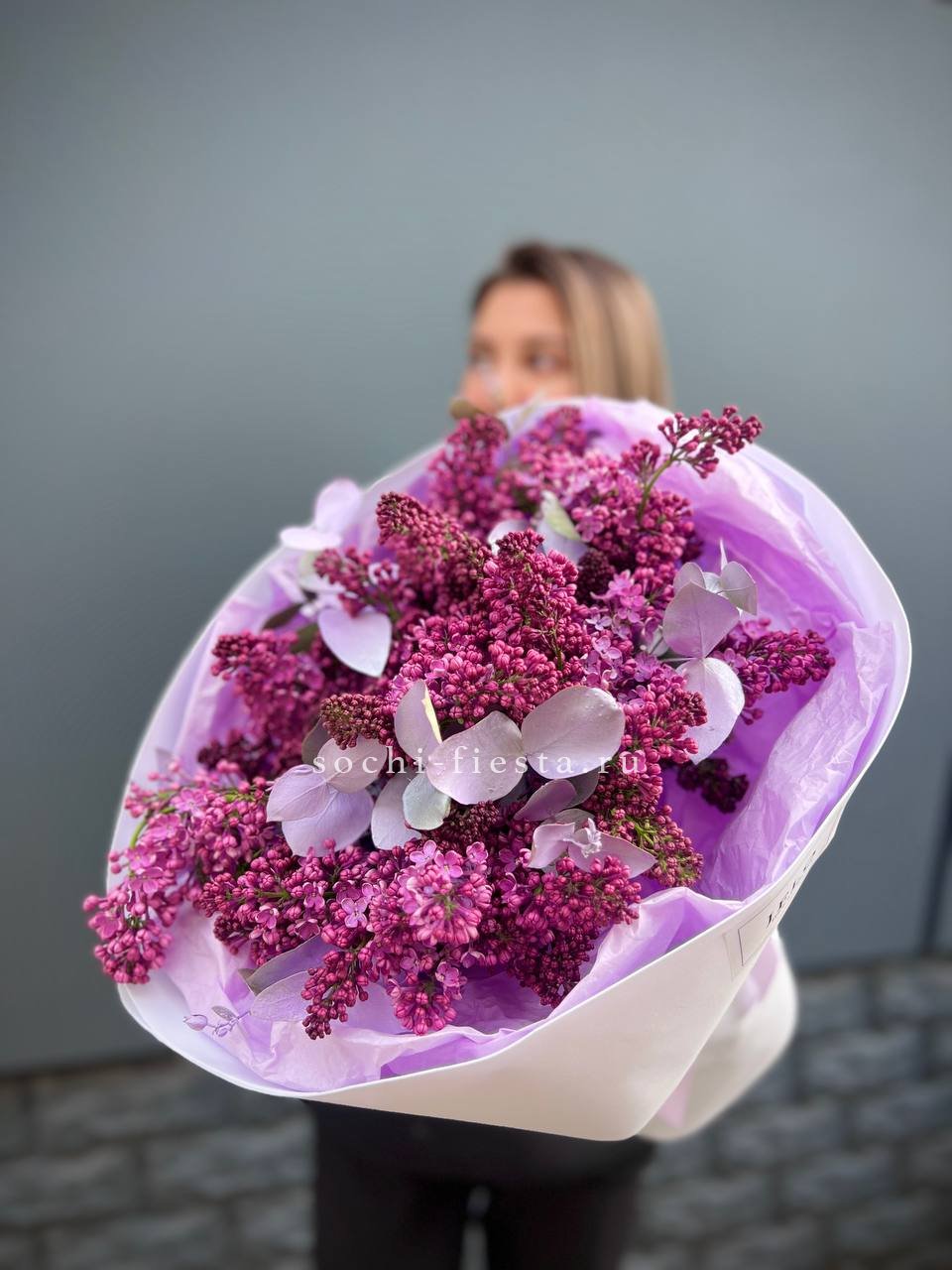 Девять веток сирени образуют воздушную форму с мягким силуэтом. Соцветия располагаются свободно, создавая ритм без строгой геометрии. Композиция легко вписывается в любое пространство, сохраняя естественную красоту весеннего цветения.