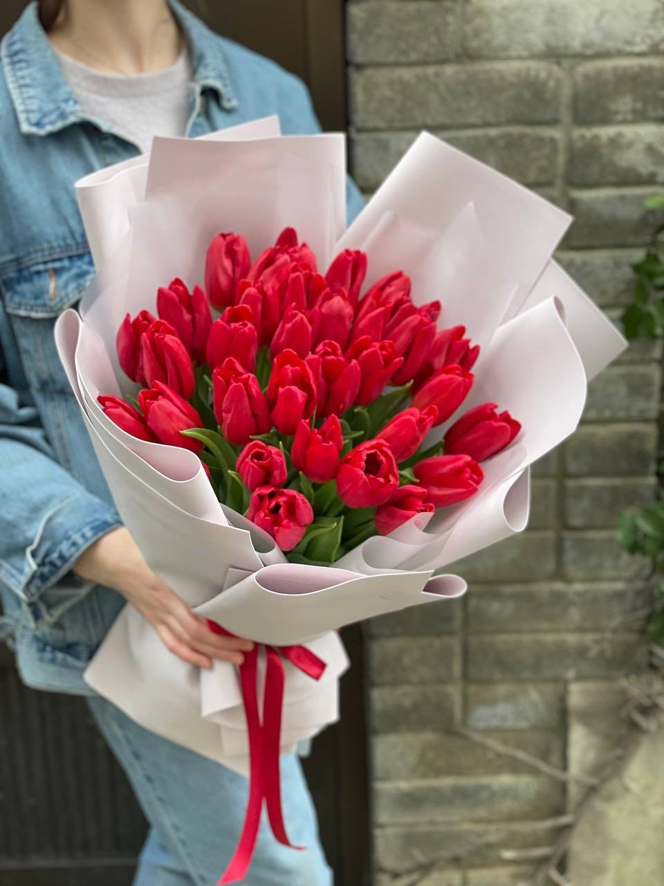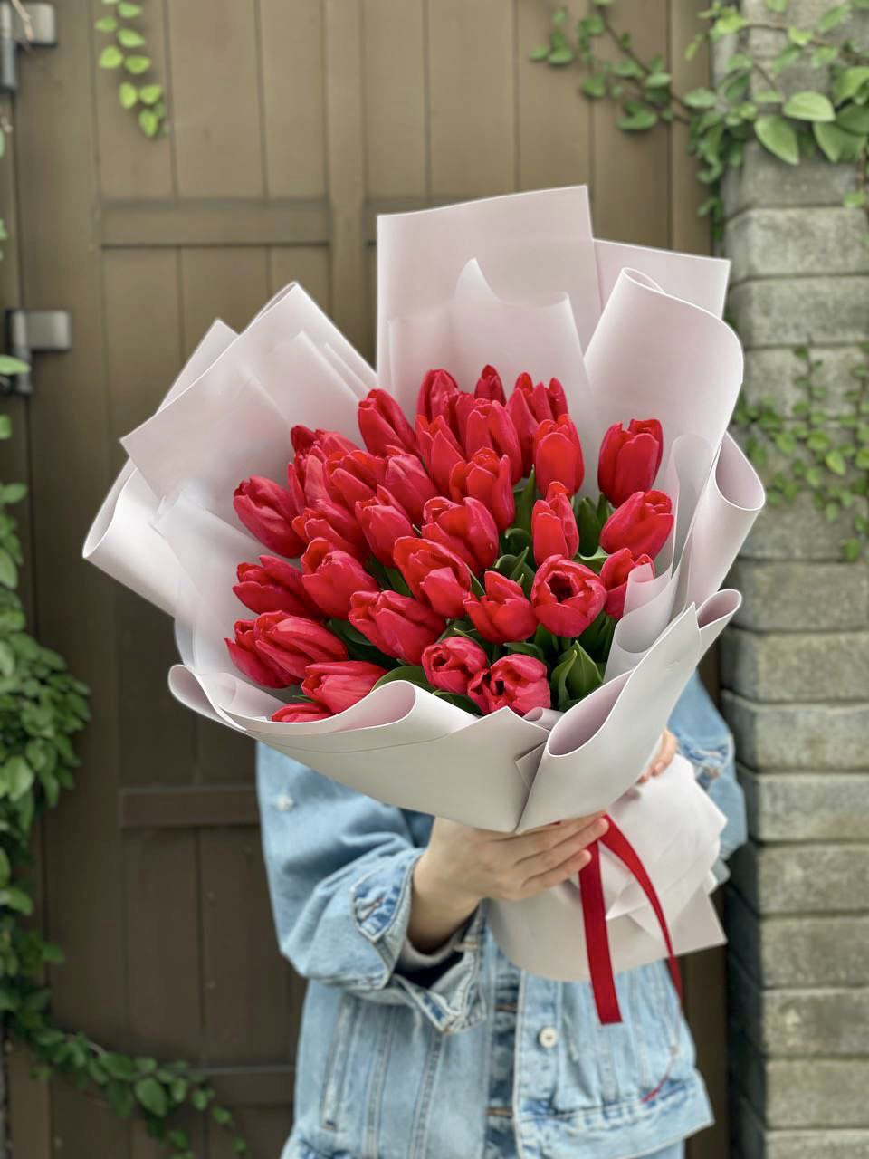 35 красных тюльпанов