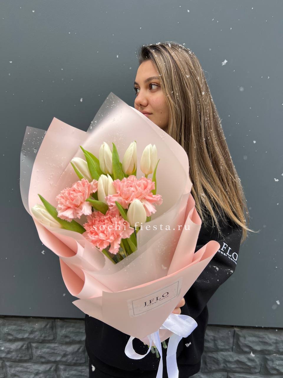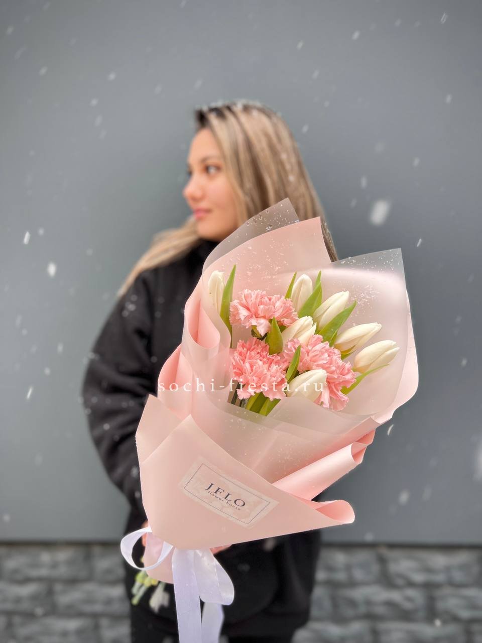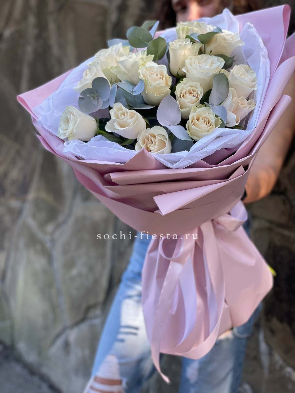 Белоснежные головки роз раскрываются постепенно и держат форму несколько дней. Монохромная гамма вписывается в минималистичный интерьер и современную эстетику.