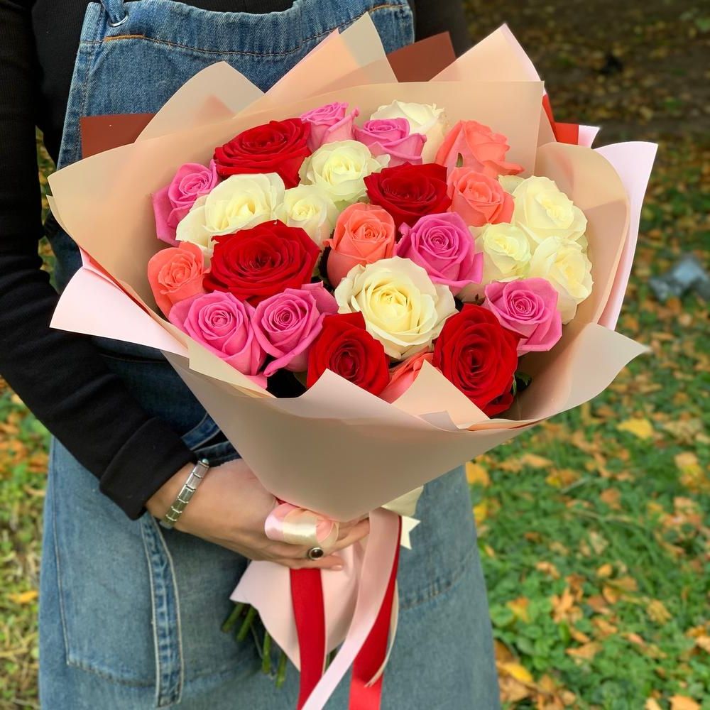 300-400г. ароматной клубники, розы- 9шт., лента, оформление.