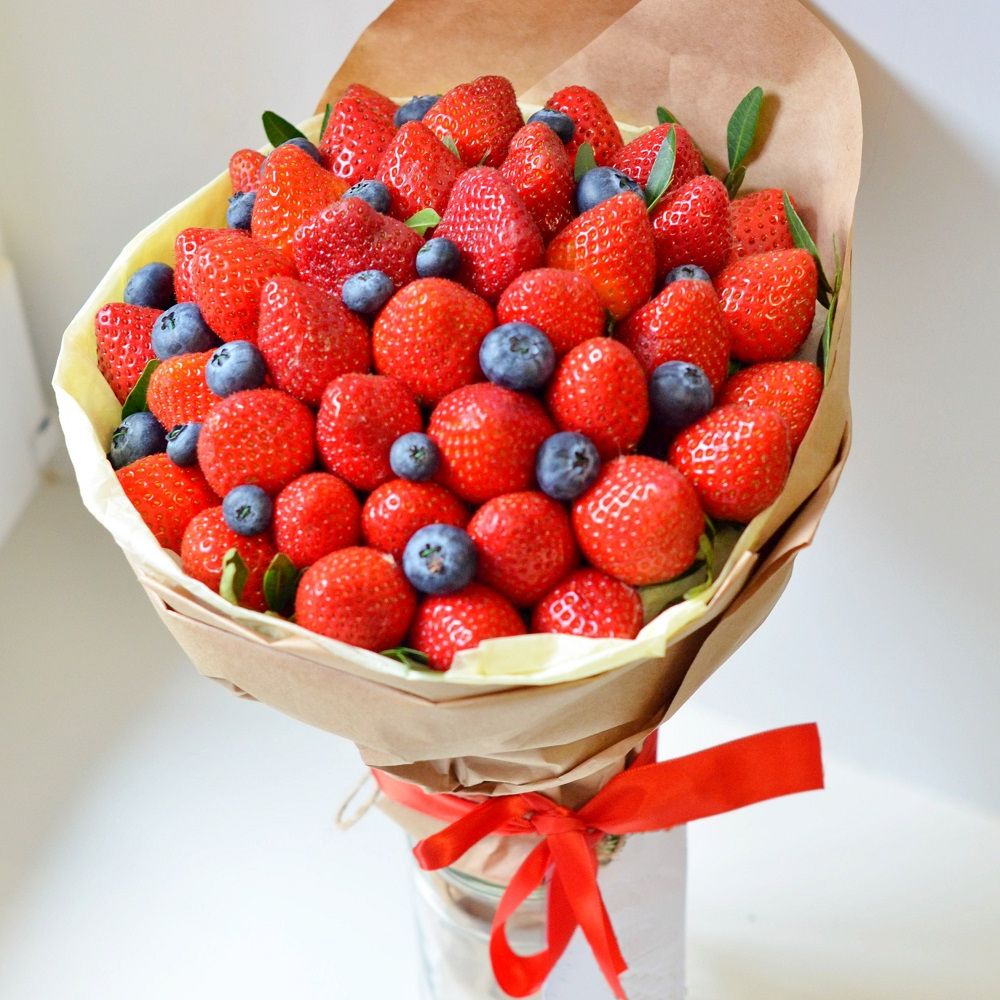 Клубника и голубика собраны в аккуратную форму, которая держится без лишних деталей. Крафтовая упаковка подчёркивает естественность подачи. Компактный вариант для тех, кто ценит простоту и вкус.
