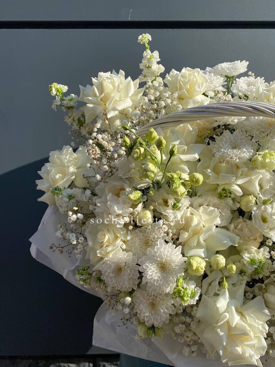 хризантемы, герберы, розы, антиринум, диантус, гортензия, бомбастик, озатамус в коробке или корзине на выбор.