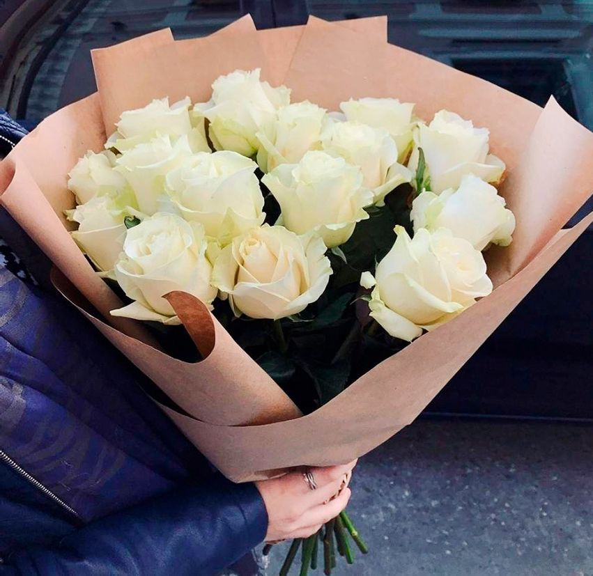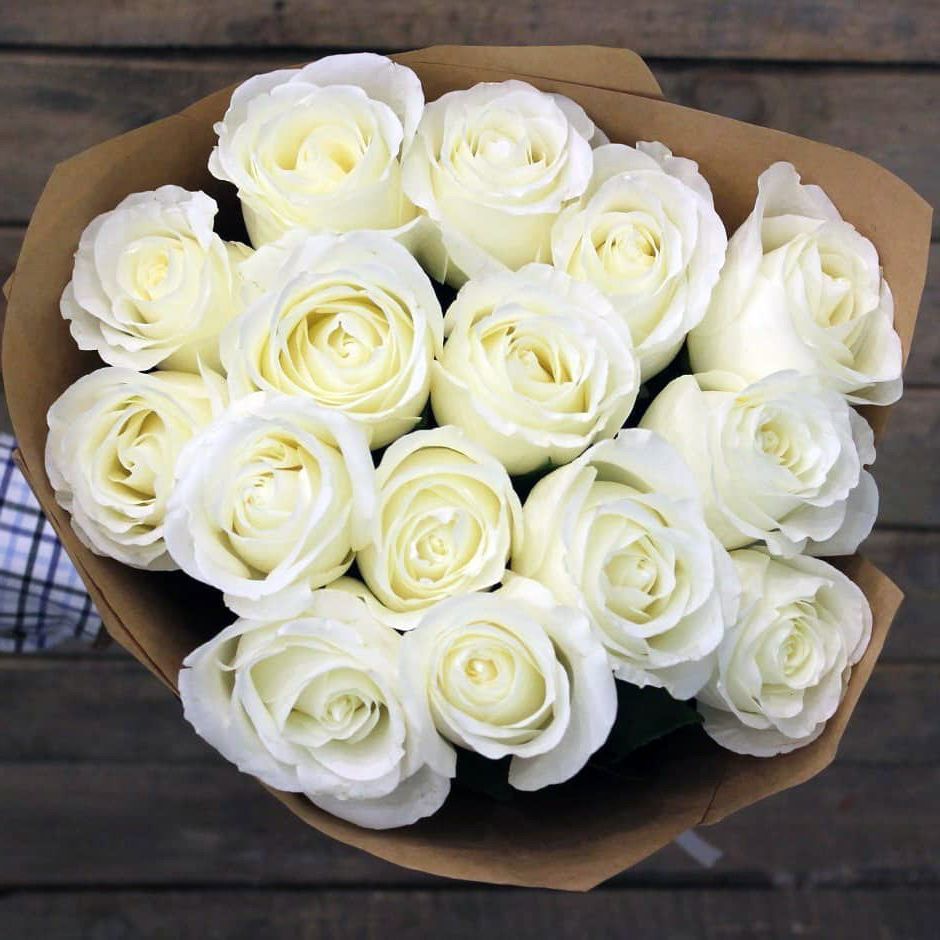 15 белых роз "Крафт"