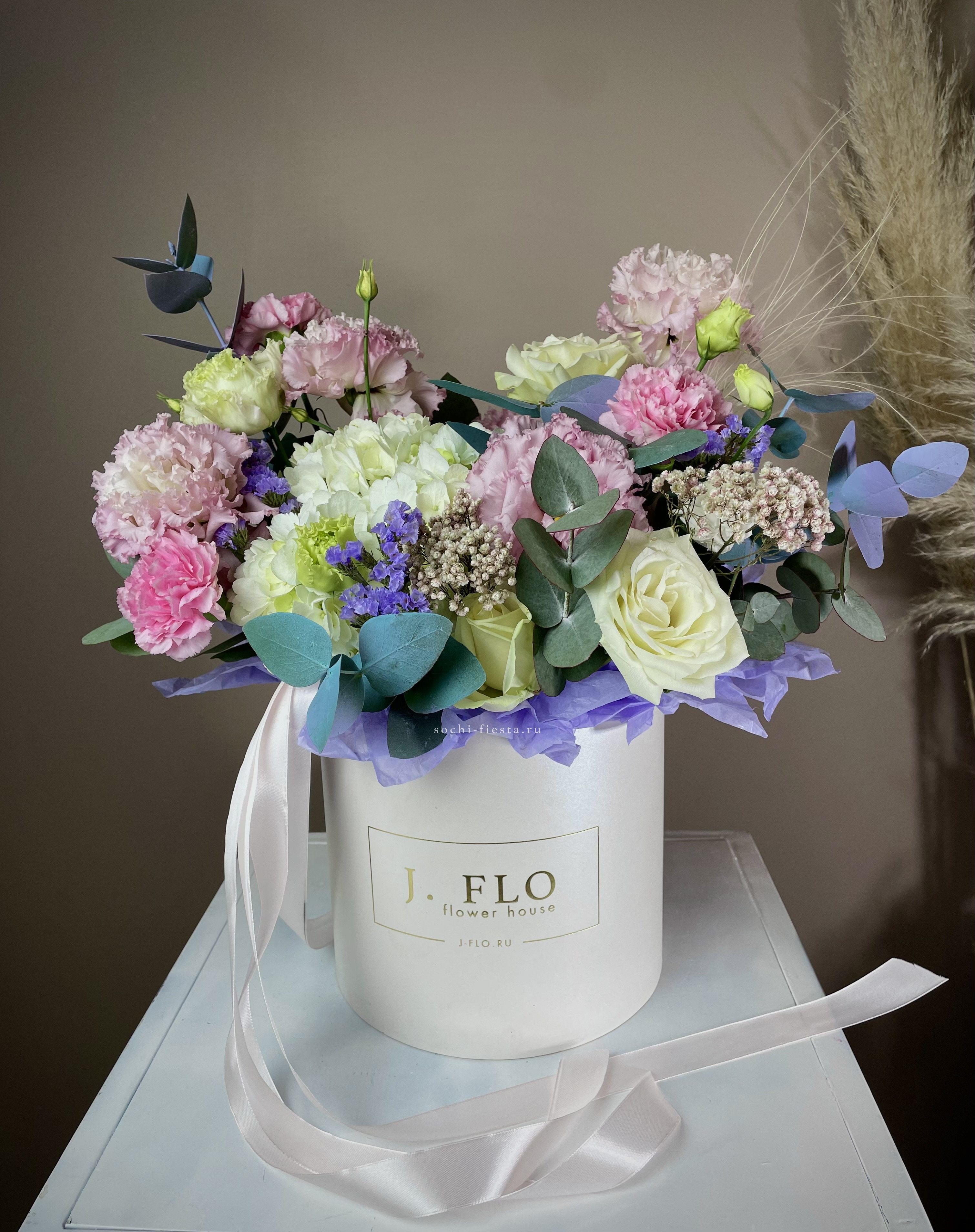 розы в нежных тонах, серый цилиндр D 13, фетр или бумага тишью.
