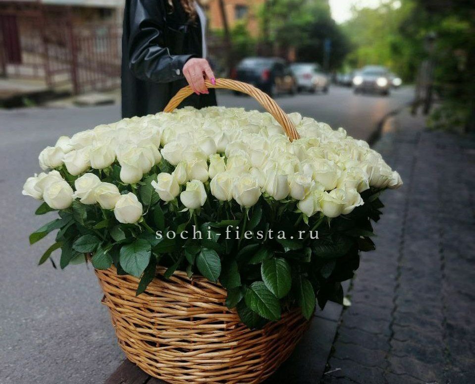 белая роза 303шт., оформление в букет или корзину на выбор.