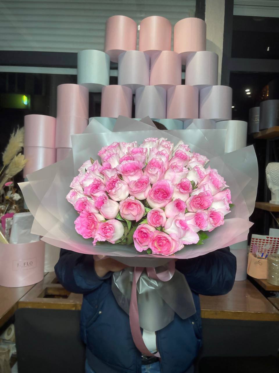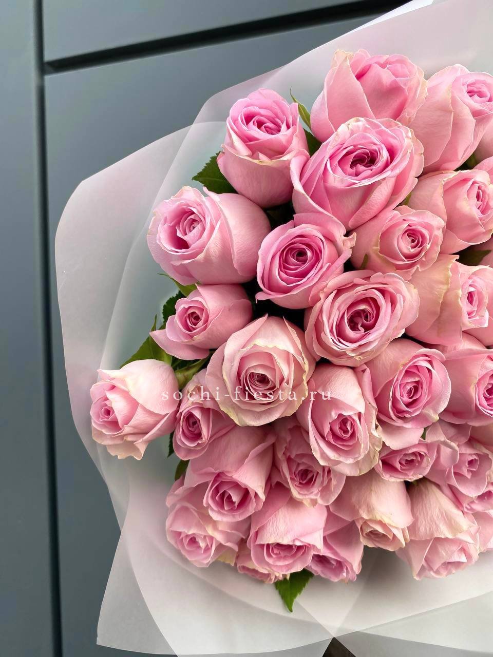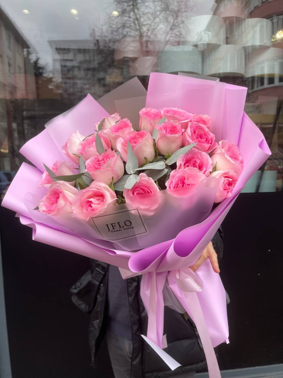 Для заказа товара "7 розовых роз с эвкалиптом" с доставкой в Долгопрудном нажмите