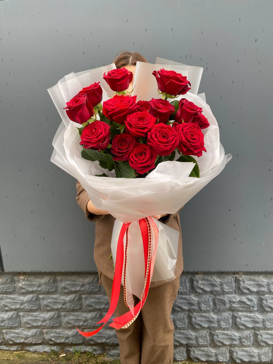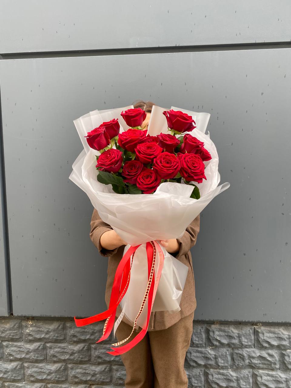 15 высоких красных роз