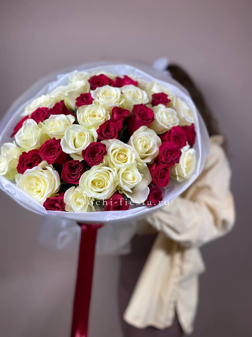 Букет из красных белых 45 роз
