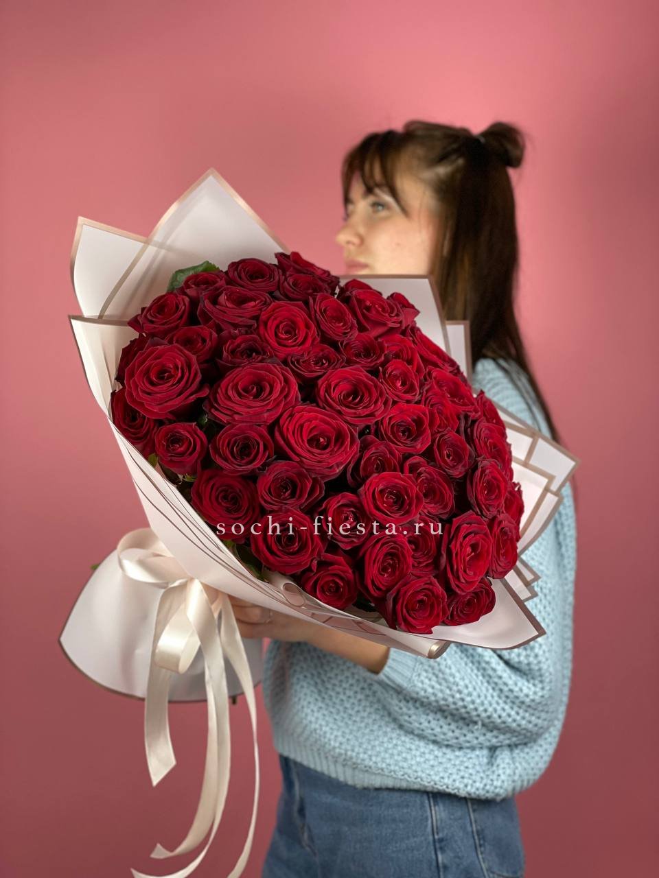 Букеты из розовых роз