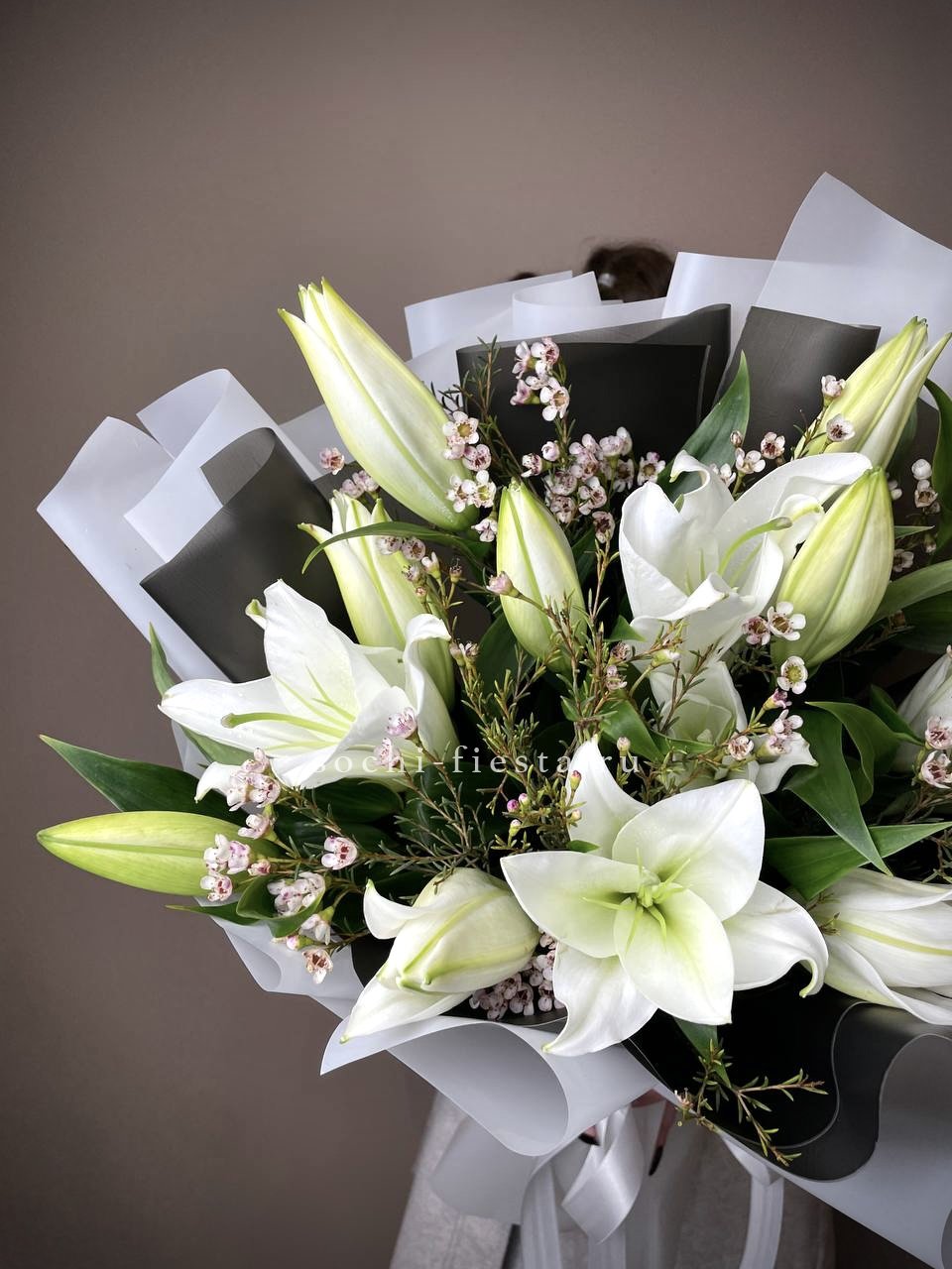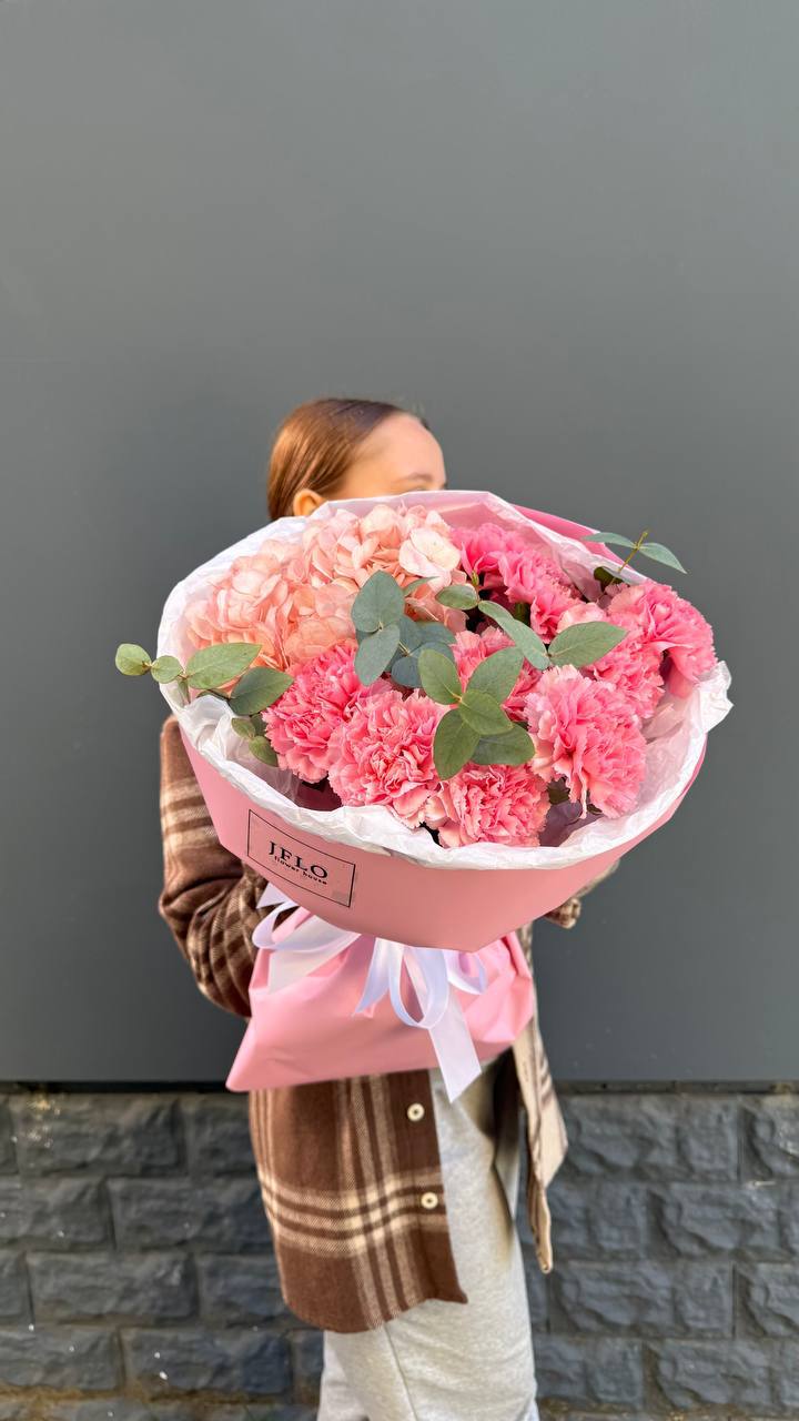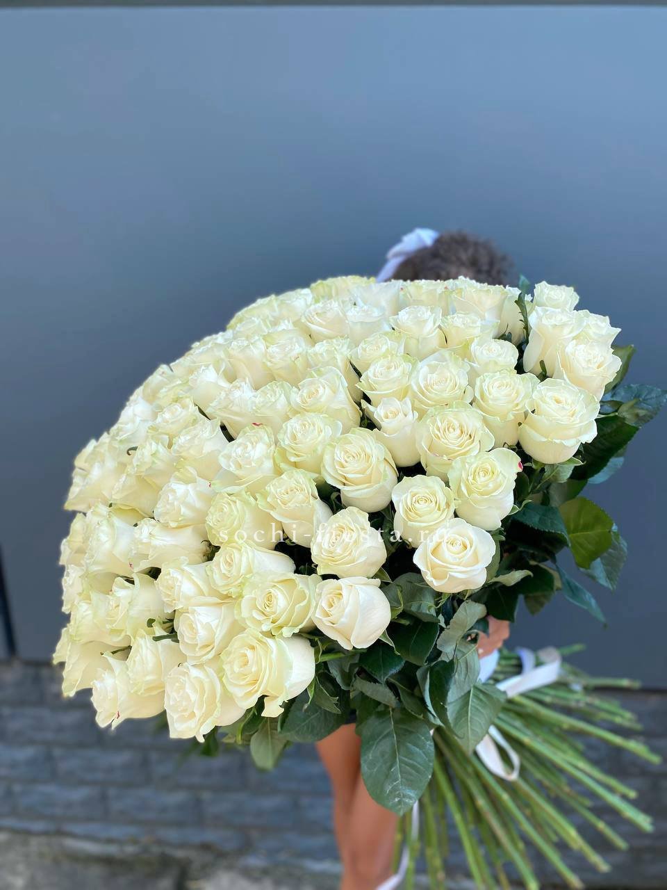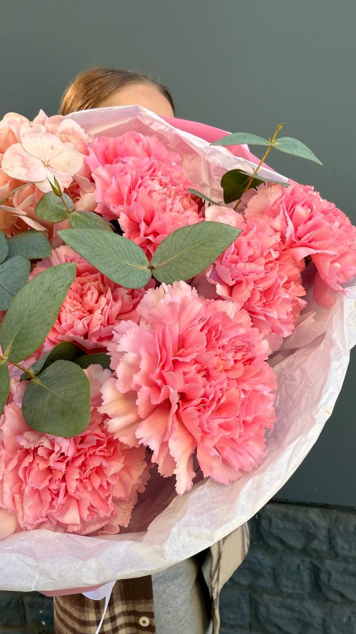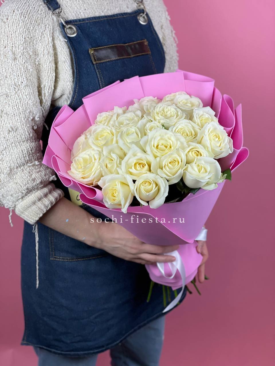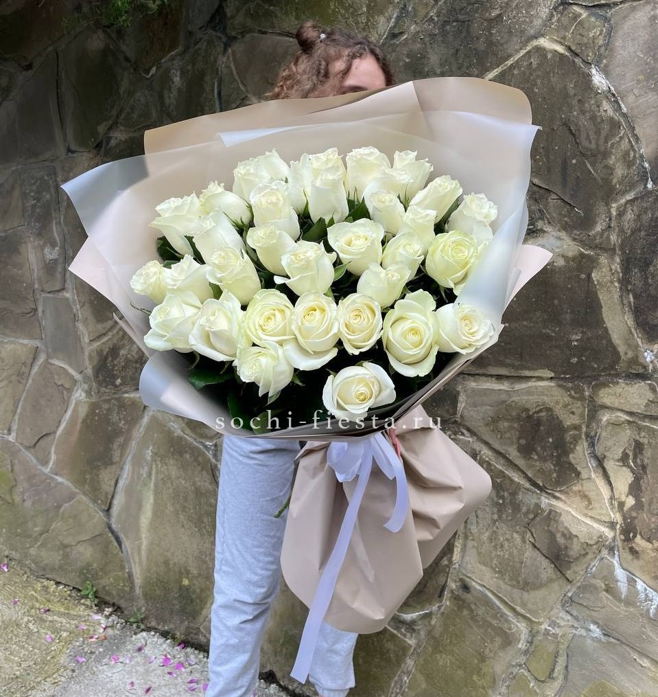 Двадцать пять стеблей выстроены в объёмную композицию с выразительным присутствием. Авторское оформление добавляет завершённость и подчёркивает масштаб букета.