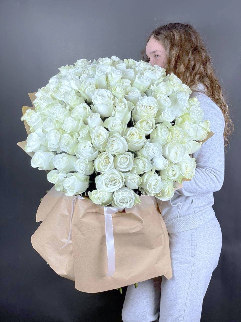 101 белая высокая импортная роза