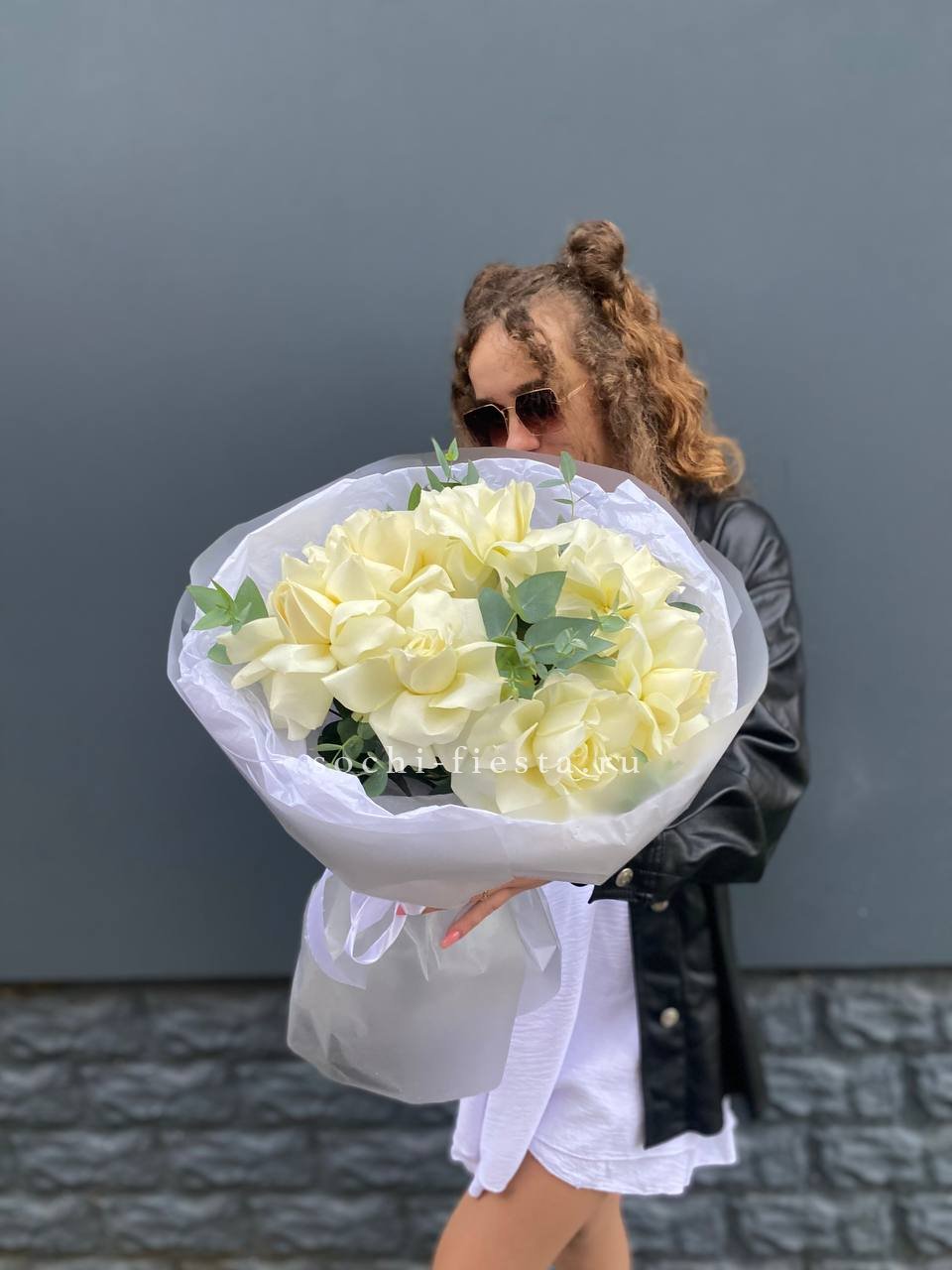 Для заказа товара " Букет высоких белых роз " с доставкой в Долгопрудном нажмите