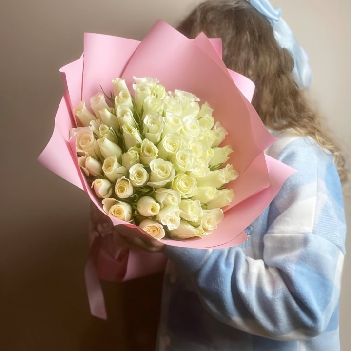 Букет из 51 белой розы (Кения)