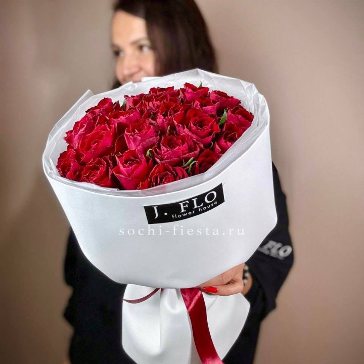 51 роза мадам ред в нежном оформлении