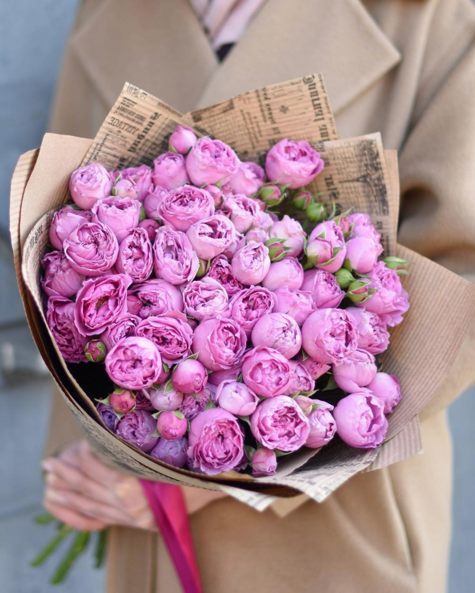 101 кустовая роза, лента, дизайнерская упаковка.