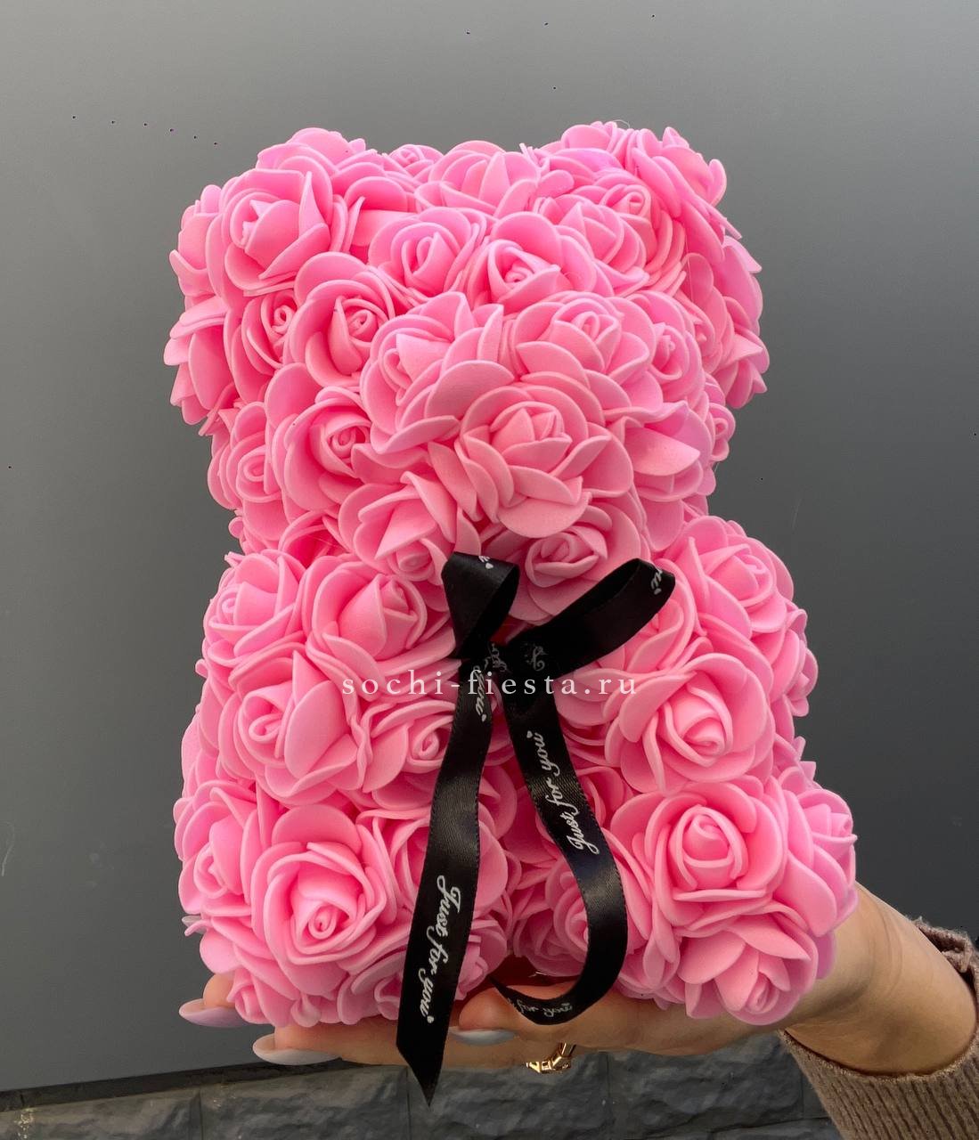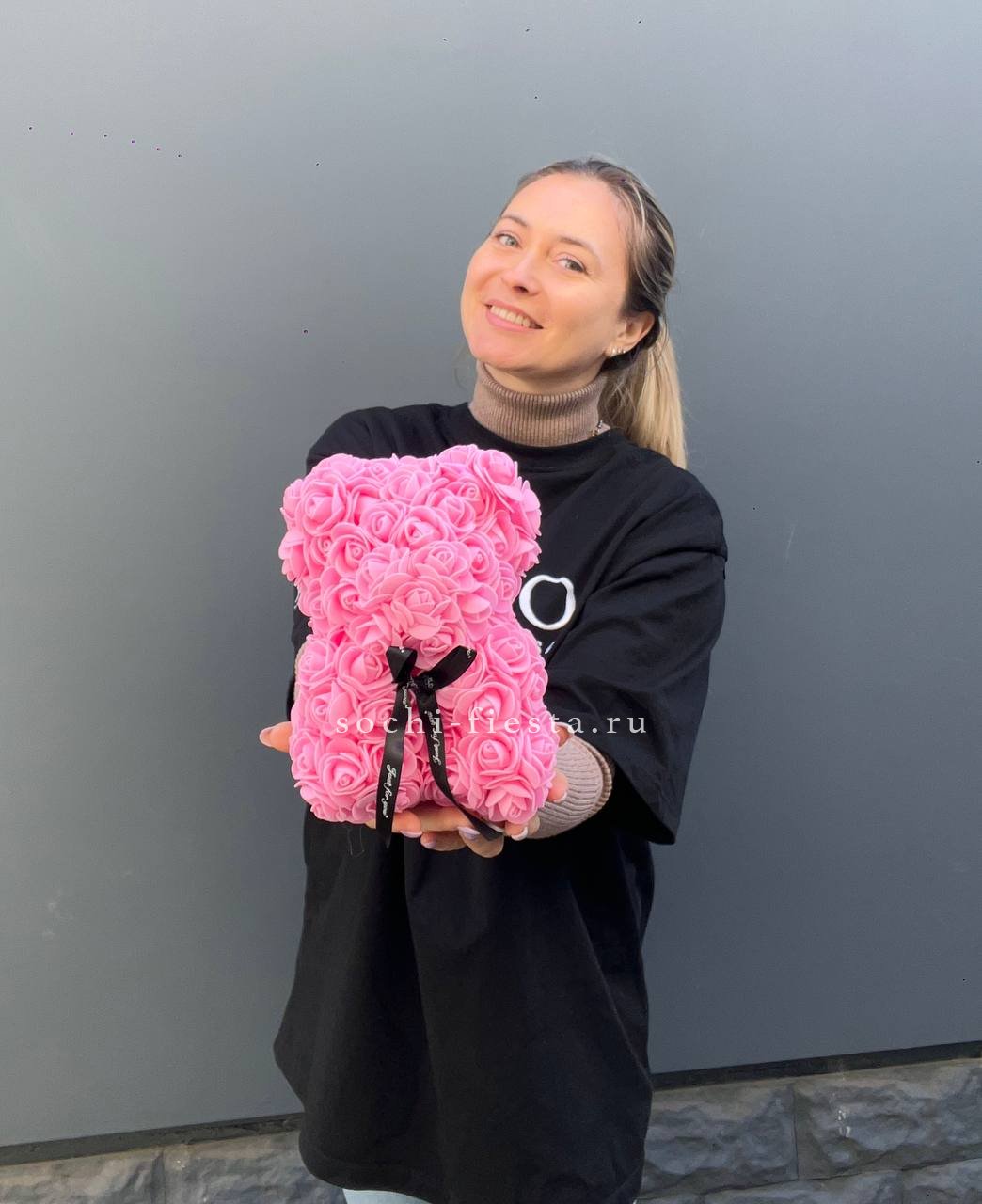 Игрушка медведь из розовых роз