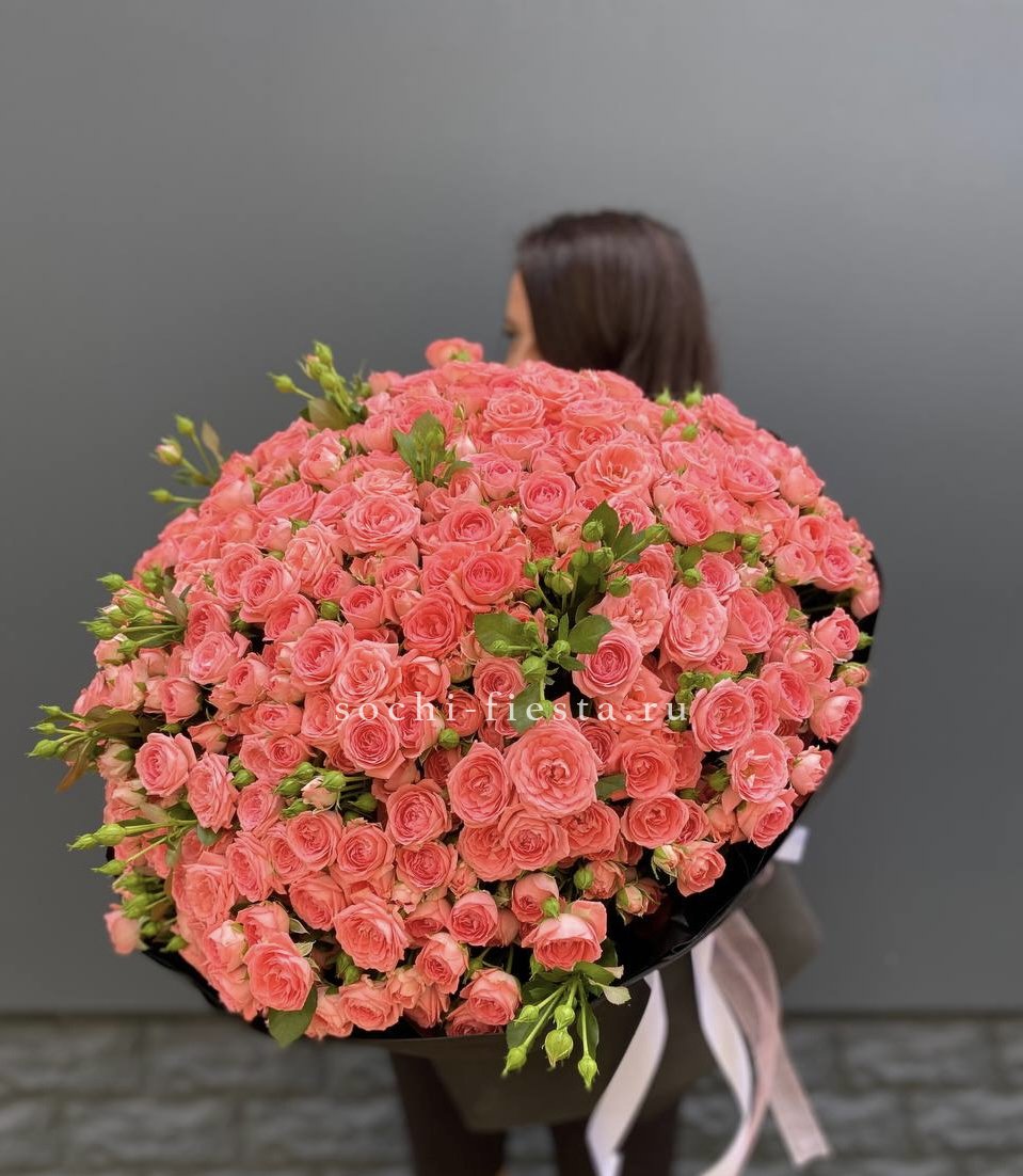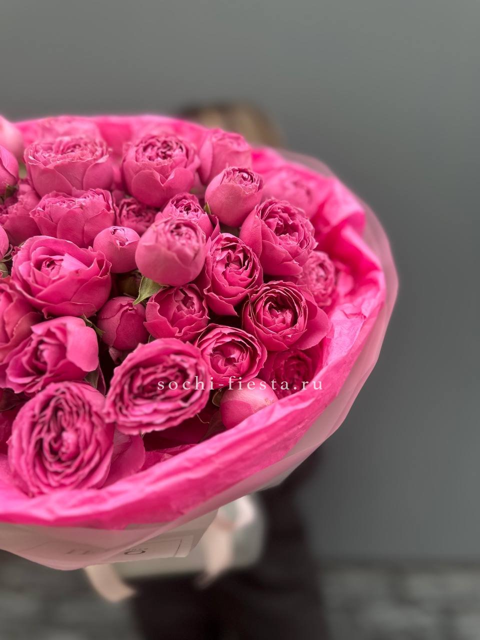 Кремовые кустовые розы сорта Мадам Бомбастик с пушистым лагурусом в дизайнерской упаковке. Многослойные бутоны создают воздушный силуэт. Мягкая пастельная гамма и природная фактура трав формируют спокойный образ.