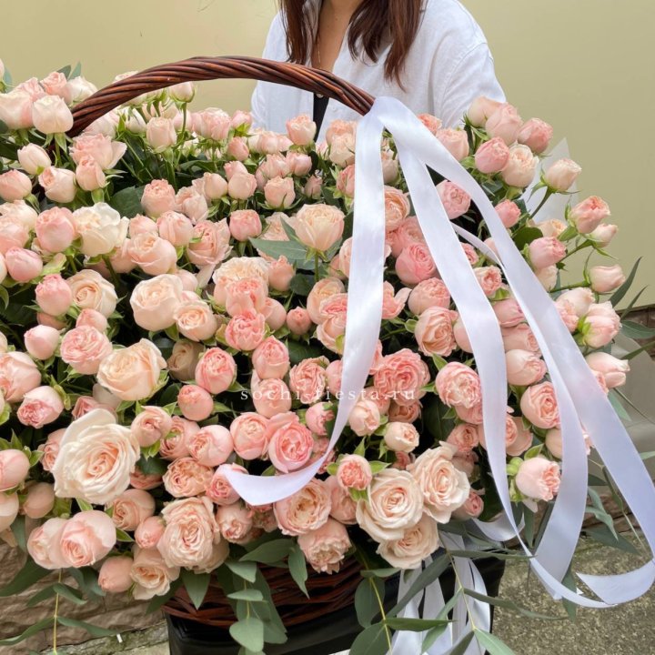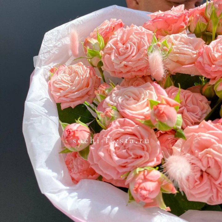 Кустовые пионовидные розы сорта «Бомбастик» отличаются крупным бутонов, нежной текстурой и бледным воздушным оттенком.