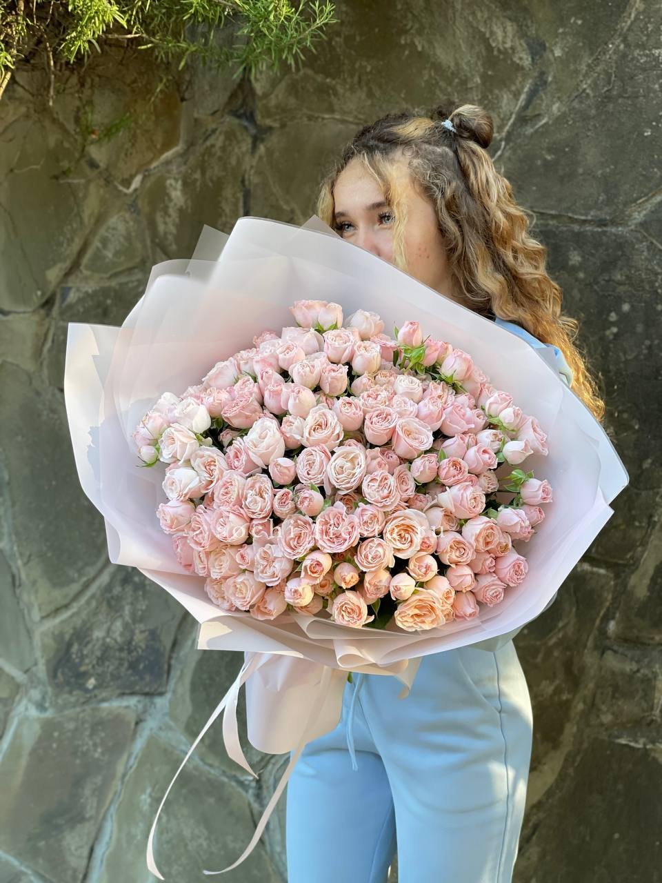 пионовидные розы сорта Бомбастик - 201 шт., дизайнерское оформление