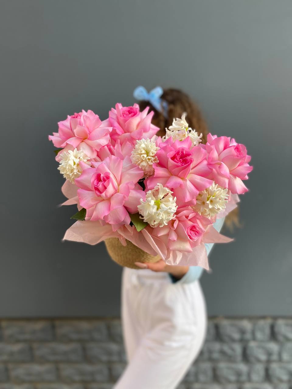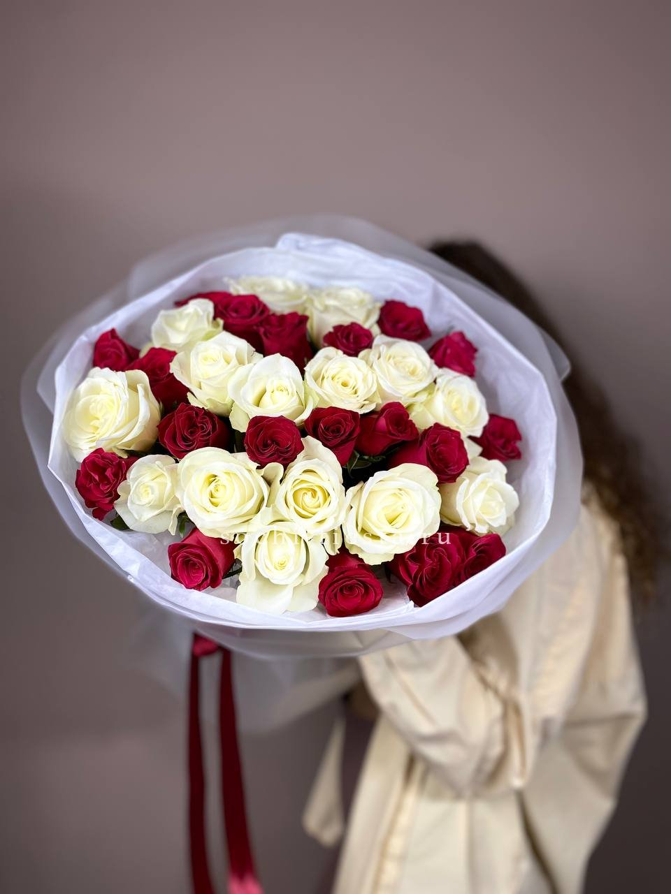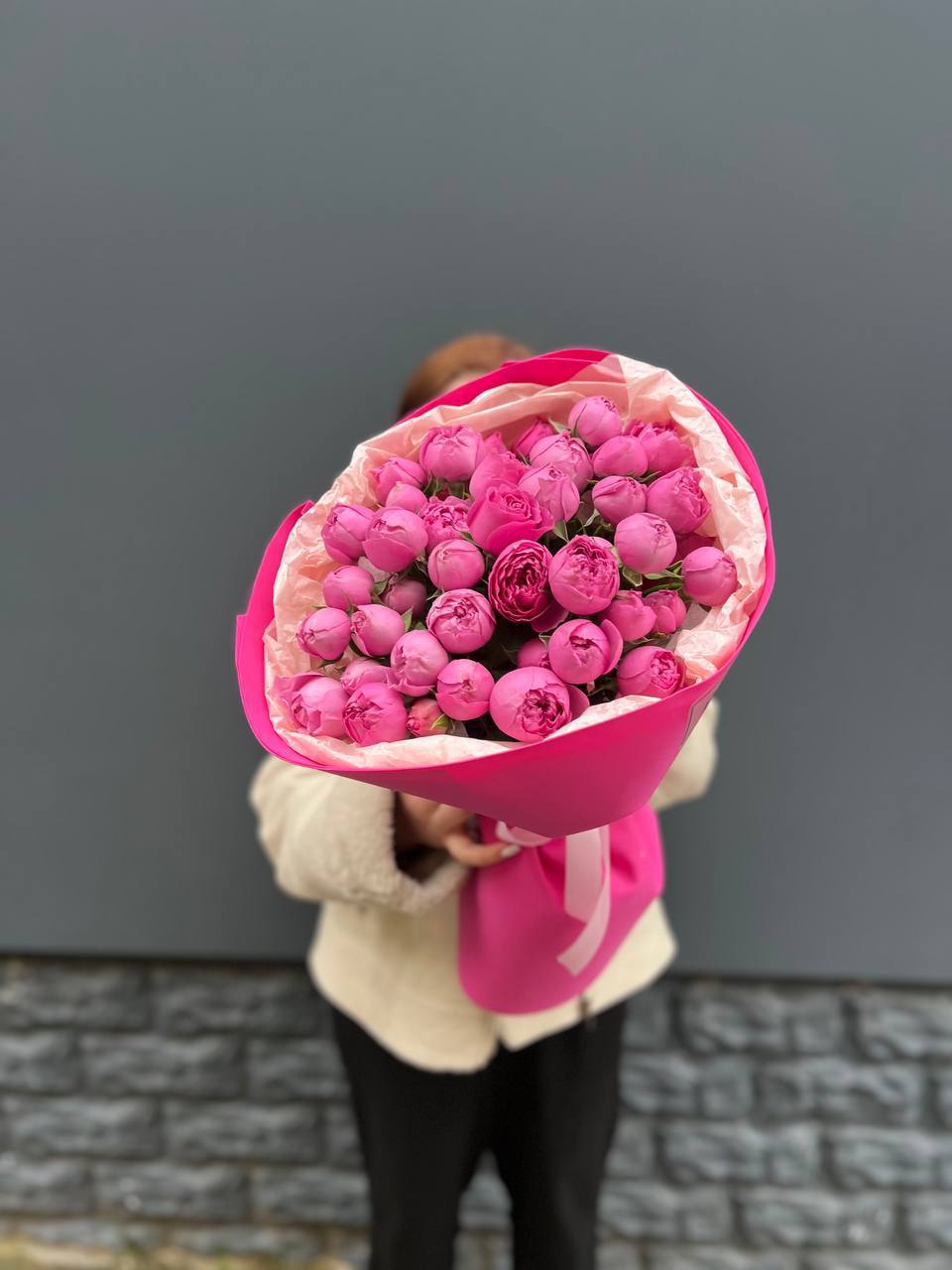 минимальный состав: кустовые розы 31шт., лента, упаковка на выбор.