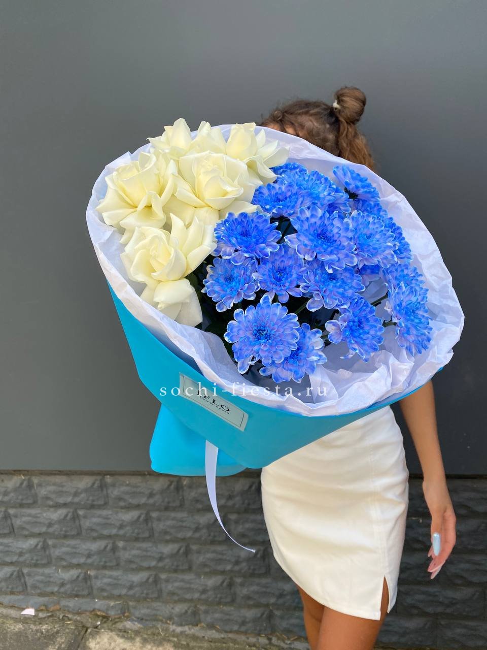 Для заказа товара "Дуо букет розы и хризантема" с доставкой в Долгопрудном нажмите