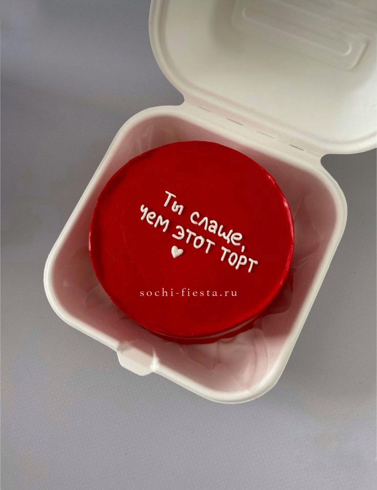 Авторский бенто-торт в формате на одного-двоих человек с яркой праздничной надписью. Клубничный пломбир или шоколадный трюфель внутри раскрывают классические сочетания вкусов. Упаковка входит в комплект.