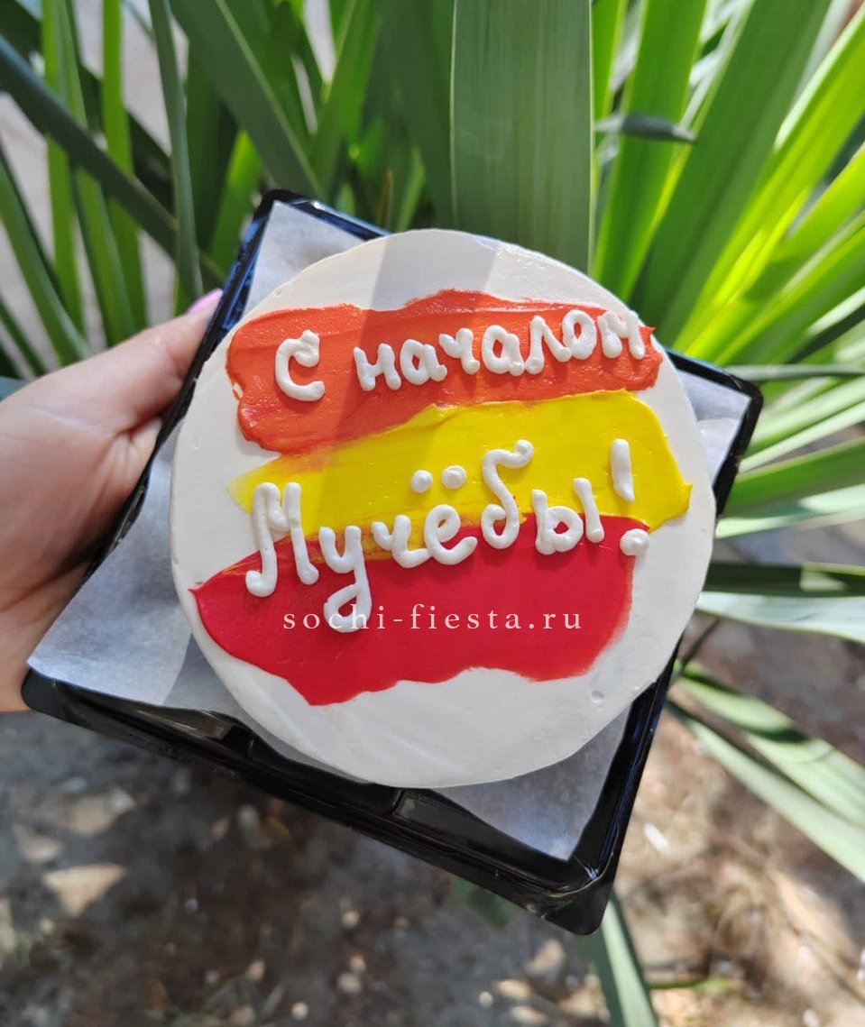 Праздничный бенто-торт ручной работы с персональным поздравлением. Декор из крема держит форму и добавляет объём композиции. Выбор между клубничной свежестью и шоколадной глубиной.
